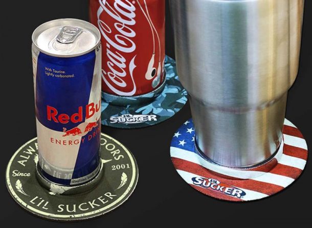 L’il Sucker® keeps your drink firmly planted where you want it. Just slip it on your can, bottle, tumbler, from the bottom up, set it on any smooth surface, and let L’il Sucker do it's magic.